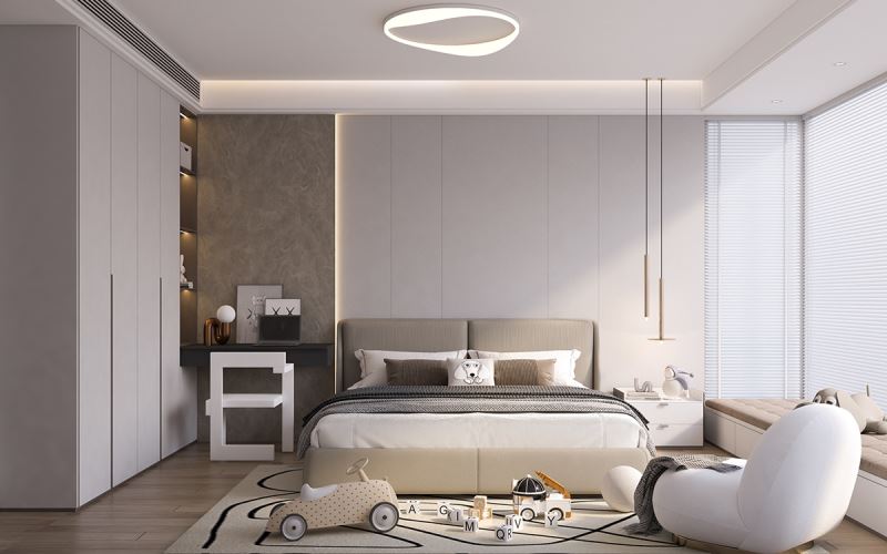 本案以170㎡的敞闊空間為畫(huà)卷,執(zhí)筆隱奢極簡(jiǎn)的設(shè)計(jì)哲學(xué),為您勾勒一處身心皆安的品質(zhì)居所。我們秉持健康環(huán)保理念,通過(guò)頂、墻、門(mén)、柜的一體化整合設(shè)計(jì),摒棄冗余裝飾,讓家的每一寸空間都流淌著舒適與寧?kù)o。步入一體化客餐陽(yáng)區(qū)域,視野豁然開(kāi)朗。電視背景墻與沙發(fā)背景墻對(duì)向而立,與微復(fù)式結(jié)構(gòu)共同撐起大宅氣度。陽(yáng)臺(tái)休閑區(qū)巧妙嵌入,無(wú)論是午后品茗還是與友麻將,皆成忙里偷閑的愜意時(shí)光。L型轉(zhuǎn)角廚房動(dòng)線流暢,與圓桌餐廳形成完美互動(dòng);餐廳一側(cè),半開(kāi)放式奢石餐邊柜成為視覺(jué)焦點(diǎn),天然的紋理與溫潤(rùn)的木色相映成趣,在簡(jiǎn)約中暗藏奢華質(zhì)感。私密區(qū)域同樣匠心獨(dú)運(yùn)。兒童房將書(shū)桌、衣柜與睡眠區(qū)一體化定制,功能完備且渾然天成,助力孩子專注學(xué)習(xí)與健康成長(zhǎng)。主臥與次臥延續(xù)靜謐格調(diào),一門(mén)到頂?shù)囊鹿翊钆錁O簡(jiǎn)拉手設(shè)計(jì),線條利落純粹,在擴(kuò)大收納空間的同時(shí),極大提升了視覺(jué)上的延伸感,營(yíng)造出令人放松的睡眠環(huán)境。全案通過(guò)高級(jí)木飾面、定制系統(tǒng)柜與奢石元素的極致組合,不止于視覺(jué)上的高級(jí)大氣,更致力于為您打造一個(gè)從身體到心靈都倍感健康、安舒與從容的理想家。more +11月