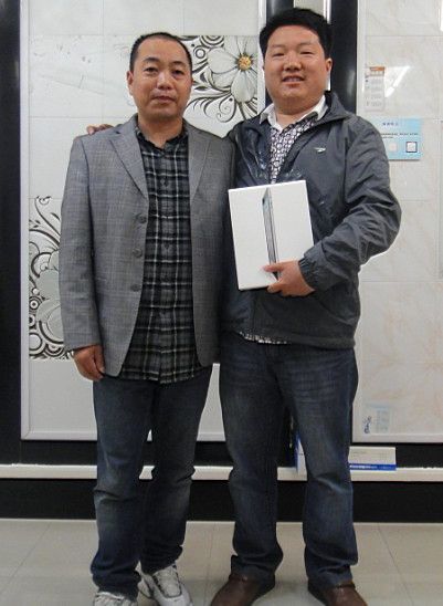 上海嘉定店沈總和中獎顧客黎寶寧愛人合影