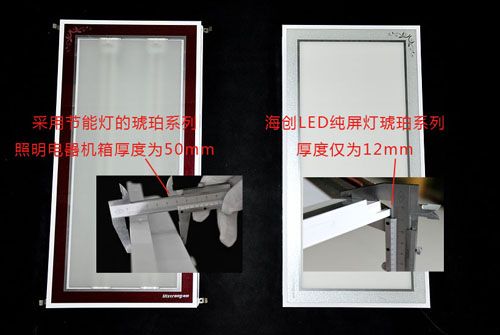 1.海創(chuàng)琥珀系列節(jié)能燈與琥珀系列LED純屏燈產(chǎn)品厚度對(duì)比: