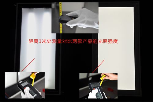 琥珀系列節(jié)能燈管產(chǎn)品(左)與琥珀系列LED純屏燈(右)產(chǎn)品厚度對(duì)比測(cè)試