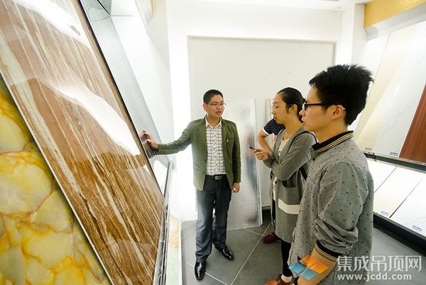 就算是才發(fā)展一年的集成墻面,海創(chuàng)也是通過不斷的創(chuàng)新嘗試,努力將之做到極致?!鞍芽郯鍙捻敳垦由斓綁γ?,不僅僅是安裝位置的變化,我們需要考慮更多。”高總監(jiān)拿著一塊集成墻面板向我們介紹到,“這塊板材的表面材料、工藝與集成吊頂扣板基本一樣,最大的區(qū)別就是后面那張鋁箔?!眽γ娌煌陧斆?,海創(chuàng)考慮到北方酷寒、南方沿海潮濕的特點(diǎn),鋁箔的使用能夠有效起到防寒保溫防潮防霉的功效,此類集成墻面板主要用于臥室、書房等。而當(dāng)位置變換到客廳,所需材料的硬度也必須隨之增強(qiáng),海創(chuàng)采用UV化處理過的UV飾面板,抗磨耐刮,不用擔(dān)心任何磕磕碰碰。另外,光澤鮮麗的理石紋理更是進(jìn)一步提升了質(zhì)感。