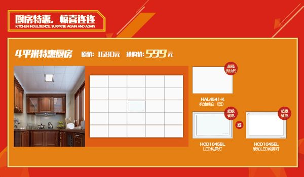 產(chǎn)品性?xún)r(jià)比一直是消費(fèi)者最看重的,元旦來(lái)臨之際,海創(chuàng)專(zhuān)為廚房量身定做一款特惠套餐,原價(jià)1680元的四平米抗油污廚房套餐在活動(dòng)期間購(gòu)買(mǎi)只需599元,讓工廠價(jià)直面消費(fèi)者。
