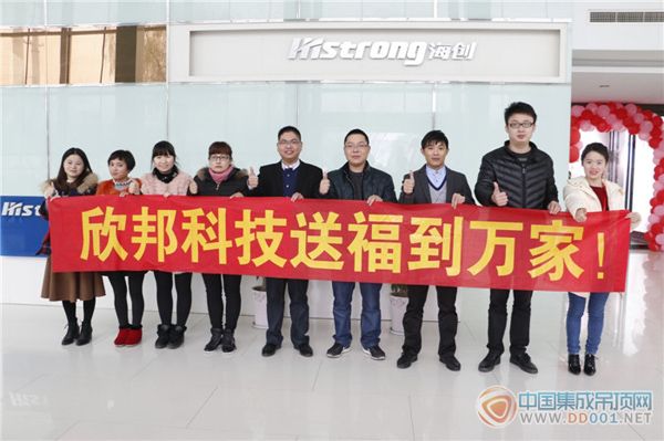 中國(guó)集成吊頂網(wǎng)總經(jīng)理王利明(左一)與海創(chuàng)全能吊頂銷售部長(zhǎng)高勤峰(右一)合影