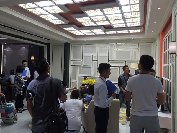 本次展會上,海創(chuàng)推出眾多新品,多樣風(fēng)格、多種板材,為客戶提供多種整體定制選擇。展會第一天就吸引了不少新老客戶前來咨詢洽談,現(xiàn)場顧客在對海創(chuàng)頂墻一體產(chǎn)品做基本了解后,紛紛表現(xiàn)出了對整體定制這一新型裝修方式的濃厚興趣。