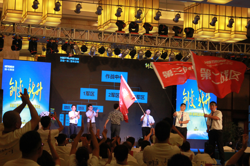正值海創(chuàng)公司20周年慶典各經(jīng)銷商共聚一堂之時,特舉行本年度全國聯(lián)動啟動儀式。首先,海創(chuàng)根據(jù)各專賣店銷售業(yè)績實行實力均等分組,共分成三個軍區(qū),三大軍區(qū)分別上臺授旗,個個精神抖擻、氣勢非凡。