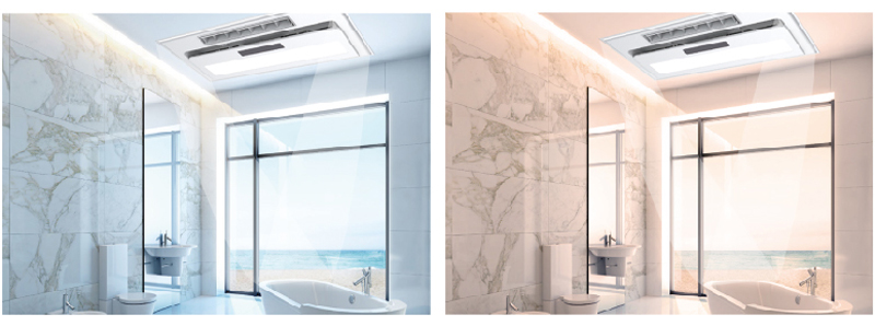 通過白、黃兩種燈光的可調(diào)選擇,模擬艷陽高照和落日西沉的場(chǎng)景效果。冷暖燈光的協(xié)調(diào)組合,讓浴室情景充滿可變的靈動(dòng)氣息,沐浴世界在水與光的輝映里無比暢快。