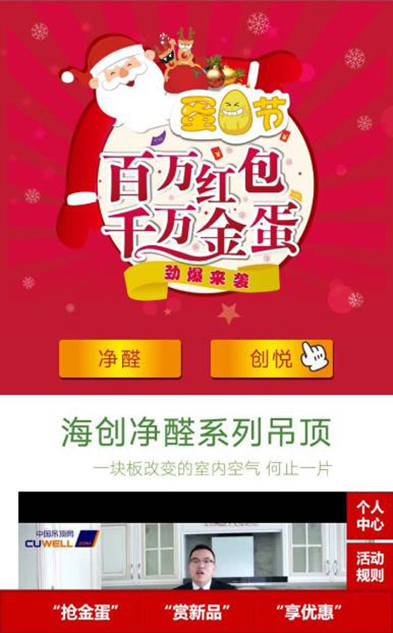 《海創(chuàng)百萬紅包雨,千萬金蛋券勁爆來襲》H5游戲搶奪攻略來源:海創(chuàng)集成吊頂十大品牌 發(fā)布時間:2016/12/10 3:26:53