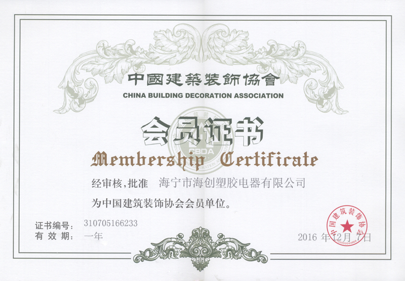 海創(chuàng)榮獲“中國建筑裝飾協(xié)會(huì)會(huì)員單位”榮譽(yù)稱號(hào)來源:海創(chuàng)集成吊頂十大品牌     發(fā)布時(shí)間:2016/12/16 1:16:15