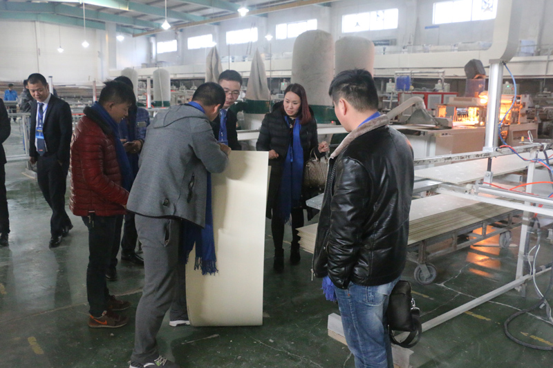 上午九點(diǎn)時(shí)分,客戶坐大巴準(zhǔn)時(shí)到達(dá)海創(chuàng)總部工廠,客戶分別對(duì)樣板間與工廠進(jìn)行實(shí)地考察。海創(chuàng)豐富而多樣的吊頂與墻面產(chǎn)品讓人驚嘆,流水線生產(chǎn)的精準(zhǔn)與快速性也讓首次來(lái)海創(chuàng)的客戶體驗(yàn)到品質(zhì)獨(dú)到??疾爝^(guò)產(chǎn)品的生產(chǎn)與成品后,客戶便來(lái)到海創(chuàng)自行搭建完成的體驗(yàn)館感受頂墻一體魅力。