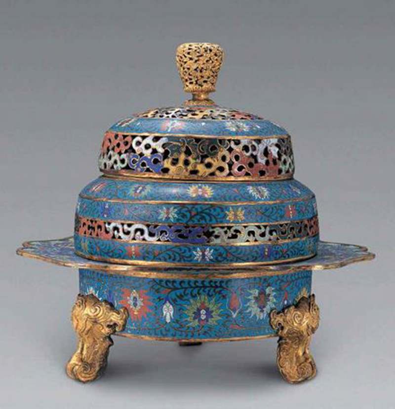 熏爐是一種外帶罩子的炭火盆,分上下兩部分,下部是盆,上部為刻有精美圖案的鏤空護罩。熏爐一般為富貴人家所有。漢代出現(xiàn)了專門熏香、凈化空氣的青銅博山爐。