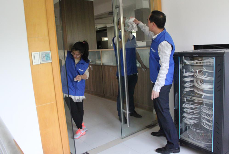 各部門在領(lǐng)導(dǎo)的指揮下,自發(fā)行動,干得熱火朝天。能看到如此多的海創(chuàng)小伙伴勁往一處使也是一種享受。辦公桌前、走廊、大廳、樓梯、茶水間,到處可見勞動小分隊的身影,