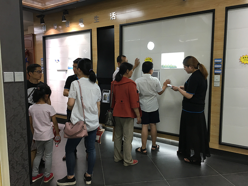 簽到領(lǐng)禮品、參觀工廠、詳細洽談、簽約抽獎,在海創(chuàng)工作人員的悉心籌備下,一系列活動按預(yù)定流程井然有序地進行??蛻絷懤m(xù)到場,很多客戶聽到汽車廣播后聞訊趕來,也有看到員工車貼廣告后打聽過來的客戶。在簡單參觀展廳后,大家不禁感嘆海創(chuàng)吊頂?shù)幕ㄐ投鄻优c品質(zhì)獨到。當(dāng)天到場的客戶,經(jīng)過與業(yè)務(wù)員的詳細洽談后,紛紛下單購買,幾近全部成交。這也讓我們在此感受到了品牌的非凡魅力。