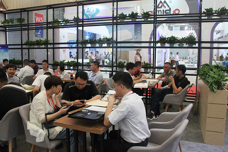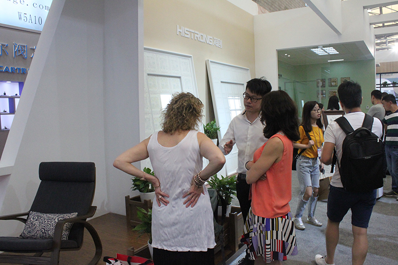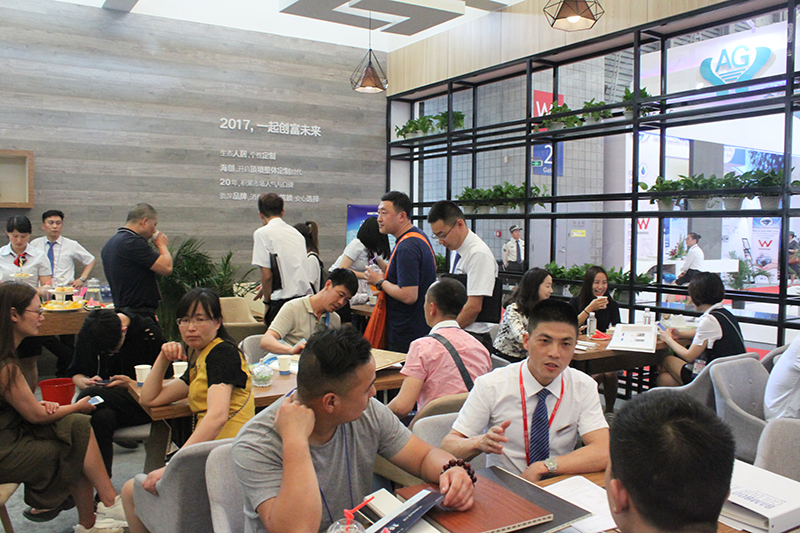 海創(chuàng)家裝環(huán)保中國行授權(quán)儀式的隆重場面吸引眾多客戶入展,展位內(nèi)人聲鼎沸、場面火熱,一波又一波客戶接連到訪商談。
