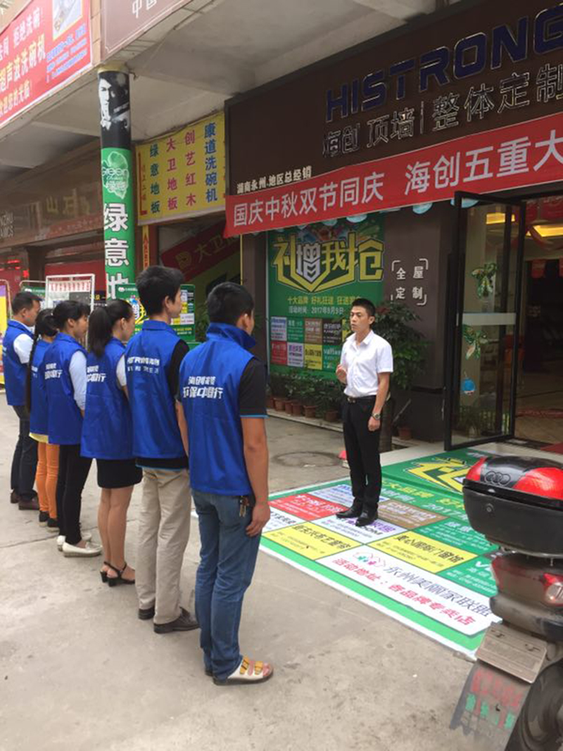 自8月海創(chuàng)卓越經(jīng)銷商打造計劃試點開始以來,9月正式導(dǎo)入,現(xiàn)活動已在江山、長沙、新沂、邳州、南陽、永州等多地展開。海創(chuàng)市場督導(dǎo)全程進店幫扶,開展活動指導(dǎo)工作,幫助海創(chuàng)品牌在當(dāng)?shù)乜焖賹?dǎo)入、滲透;并著力于幫助經(jīng)銷商快速開拓和占領(lǐng)市場。