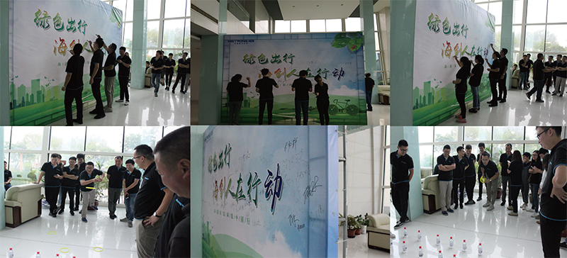 同時(shí),我們還倡議,不僅僅是無(wú)車日當(dāng)天,未來(lái)的每個(gè)月,在不影響自己工作和日常生活的前提下,每月保證至少一天不開(kāi)車。這一提議也得到了眾多員工的認(rèn)可,在各部門(mén)領(lǐng)導(dǎo)的表率下,大家紛紛在綠色出行的簽名墻上簽下自己的大名,表示愿意用力所能及的生活點(diǎn)滴為環(huán)保出力。