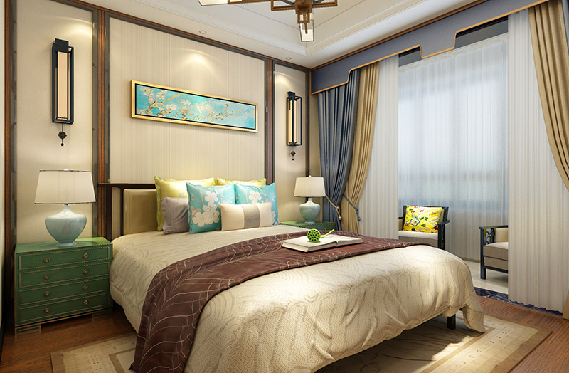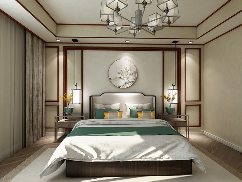 鐵刀木與北美楓木的完美線條拼合,拼接之中,搭建新韻留存的古今風味,演繹別樣的新中式風格。素雅布帛的淺淺木紋做主飾面,讓自然的氣息融入進來,臥室的靈動典雅氣質(zhì)被越發(fā)烘托。