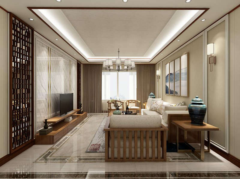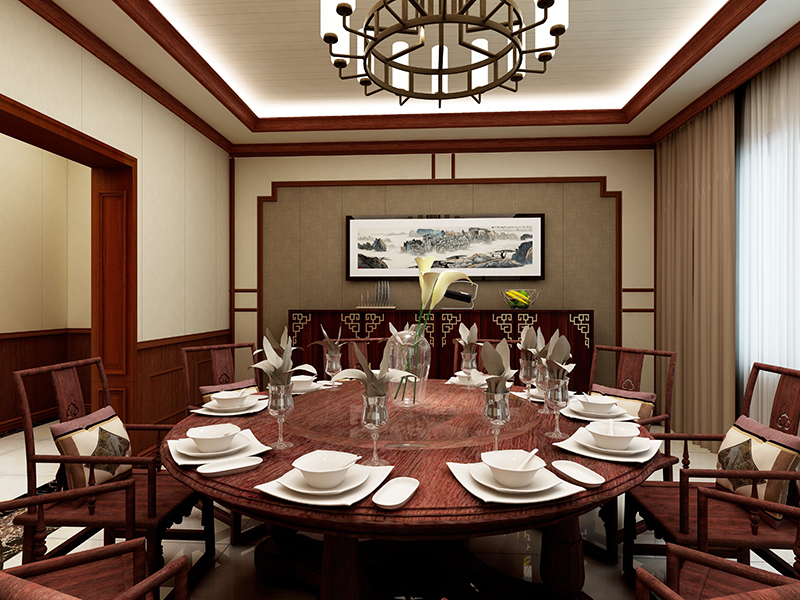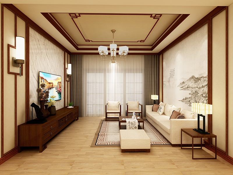 客廳的敞亮大氣需要頂面的提升來增加縱深感,新檀木線條靈活多變,延伸蜿蜒之中,拓寬頂面與墻面的視線距離,打開窗簾,當飽滿的月光打在淡意勁爽的3D水墨打印畫上,同賞之時便是天倫之樂。