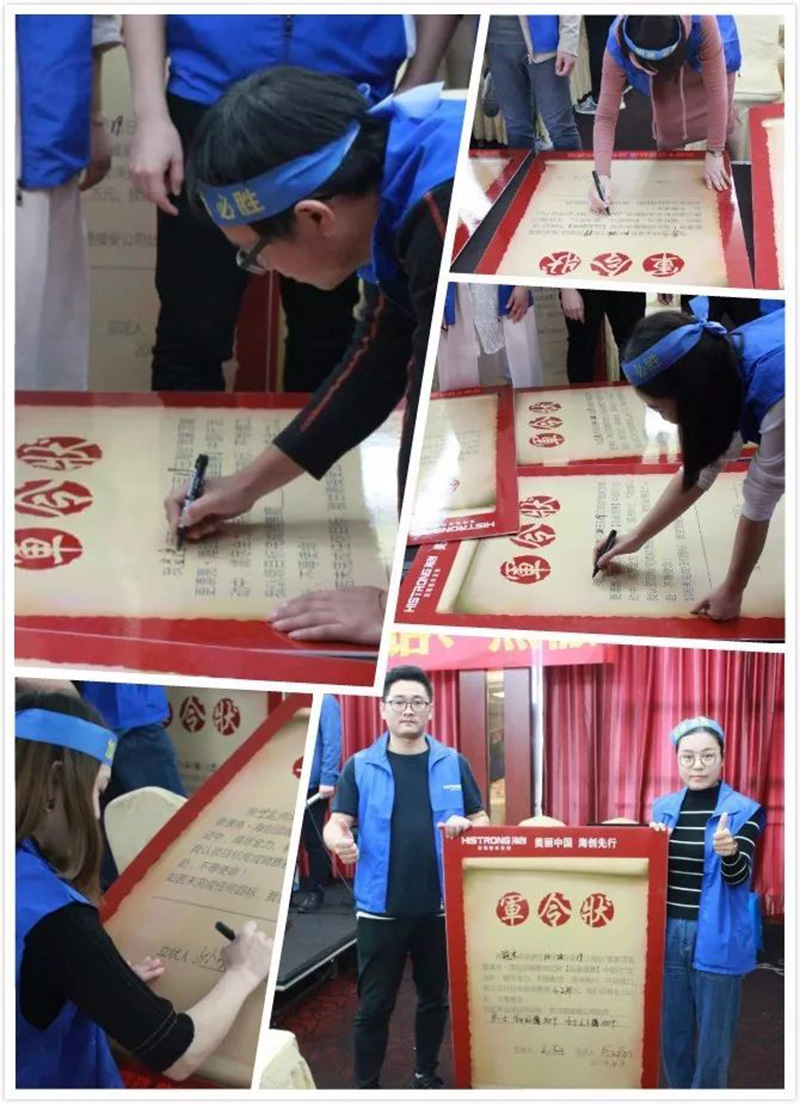 一言既出,駟馬難追!全體大軍在立下軍令狀后紛紛莊嚴宣誓,表示遵循此次大會紀律,為著給消費者提供舒適家裝產(chǎn)品、讓門店成就輝煌業(yè)績的終極目標,在此地鄭重承諾,不達目標誓不罷休!