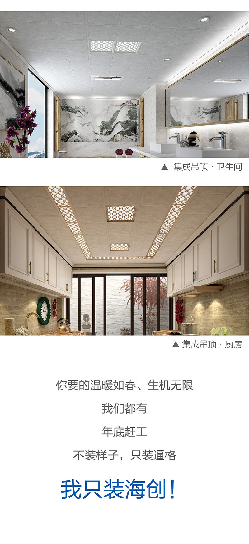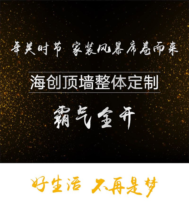 年關(guān)家裝風(fēng)暴來襲!海創(chuàng)頂墻整體定制,霸氣全開,一裝便知!來源:海創(chuàng)集成吊頂十大品牌     發(fā)布時(shí)間:2017/12/1 12:28:57