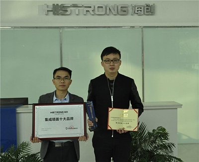 歷經(jīng)激烈的評(píng)選,獲獎(jiǎng)名單揭曉,海創(chuàng)榮獲“2017年度集成墻面十大品牌”、“2017年度頂墻集成十大品牌”雙獎(jiǎng)。為表彰企業(yè)這兩項(xiàng)榮譽(yù),中國(guó)集成墻面網(wǎng)&頂墻集成網(wǎng)總經(jīng)理韋棋峰先生來(lái)到海創(chuàng)公司總部,親自為海創(chuàng)授予該項(xiàng)榮譽(yù)。