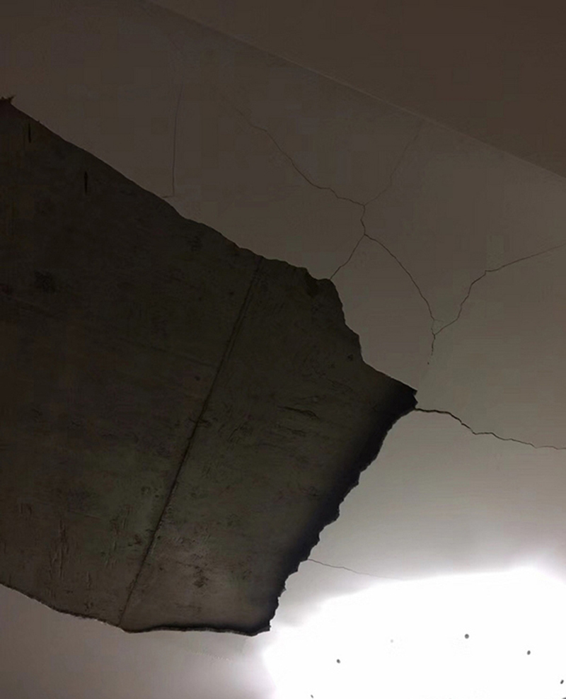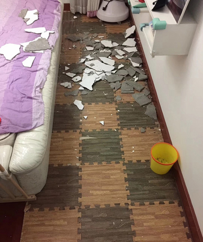 據(jù)網(wǎng)友爆料:這個月14號凌晨兩點半,浙江嘉興新豐麗X家園二期一業(yè)主家主臥天花板突然掉落,砸在地板和床尾上。業(yè)主驚醒后抱著一歲多的女兒逃去了爸媽房間,慶幸沒有砸在床頭,否則后果不堪設(shè)想。