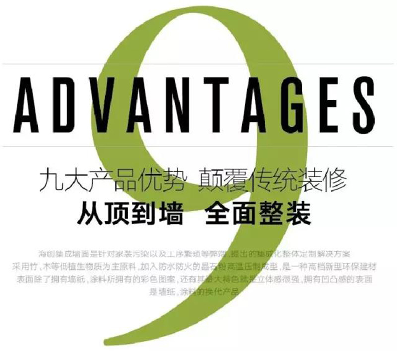 3、海創(chuàng)竹木裝飾板除具有強大安全性外,環(huán)保健康性也十分突出。相比石膏頂還需要刷漆處理的工藝,竹木裝飾板的生產(chǎn)工藝更具環(huán)保性。海創(chuàng)竹木裝飾板采用E0級國際至高環(huán)保標(biāo)準(zhǔn),綠色安全,健康環(huán)保、無毒無害。