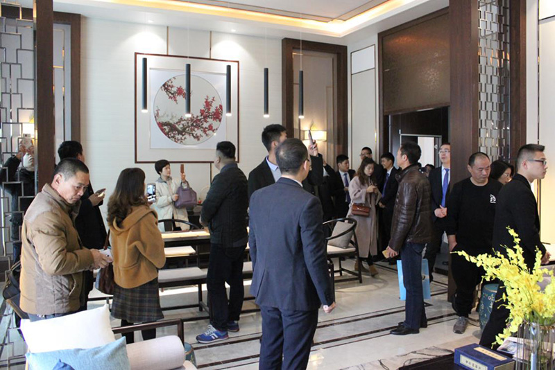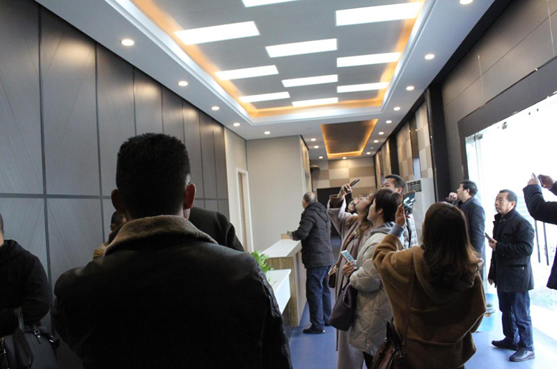 2017年12月27日,迎著冬日的暖陽,一行考察客戶首先到達(dá)華麗的海創(chuàng)頂墻整體定制展廳。比以往更為震撼的是,此次考察時,正逢海創(chuàng)史詩般的頂墻整體定制工裝展廳竣工。當(dāng)天蒞臨的客戶就這樣成了第一批目睹其華麗姿容的人。巧奪天工的精致與奢華,令在場所有人沉醉其中、流連忘返。