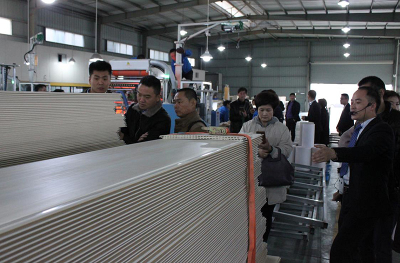 看到產(chǎn)品的魅力所在后,了解其誕生的過程也是至關(guān)重要的。隨后,考察團(tuán)隊(duì)來到海創(chuàng)車間參觀集成吊頂與集成墻面的生產(chǎn)過程。巨大的生產(chǎn)車間與流水線操作讓來訪者進(jìn)一步加深對產(chǎn)品的認(rèn)識。