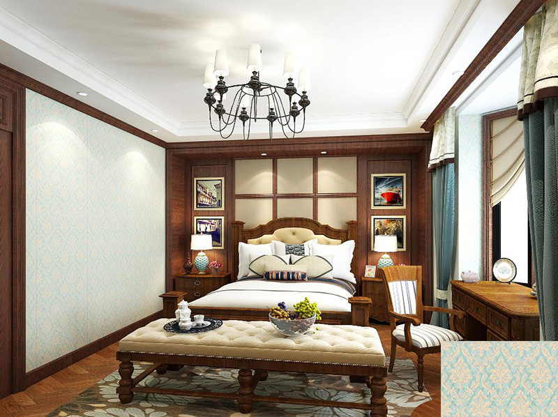經(jīng)典大馬士革圖案,夾雜海藍底紋帶來的濃郁海風,熱烈而張揚。金黃色對比色的運用,溫暖整個房間,將古典的氣質綿延至各個空間。