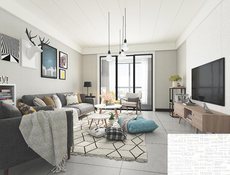 密集而又不規(guī)則的英文單詞,仿佛是在超級計算機的龐大程序中尋找突破口。字母動感,讓這方空間多了幾分酷炫,適合搭配自然系與淺色木紋系列材質。