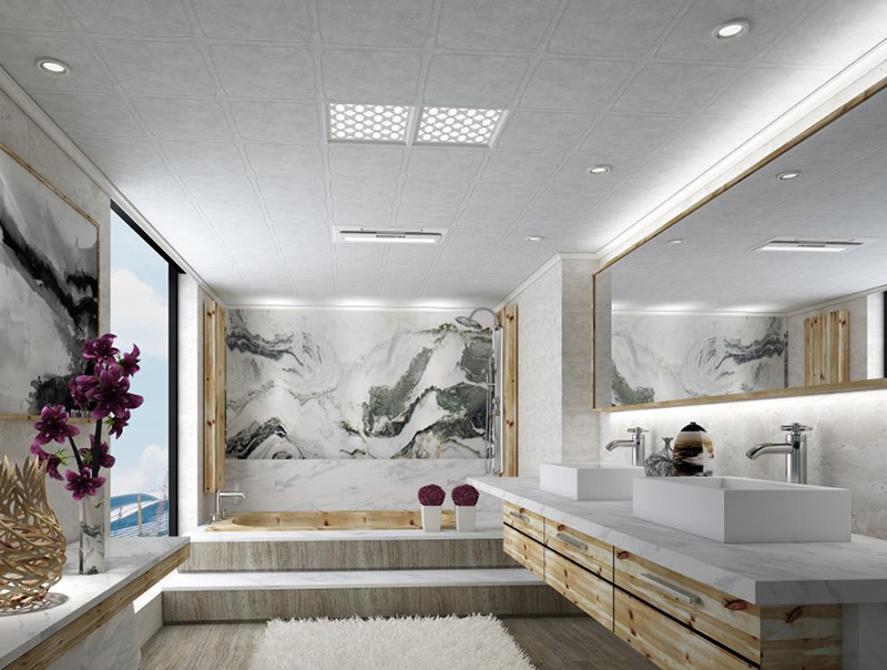 很多房間在保證臥室、客廳的通風(fēng)性后,衛(wèi)生間可能沒(méi)有窗戶了,因此臭味無(wú)法及時(shí)排出,導(dǎo)致衛(wèi)生間空氣渾濁、環(huán)境變差。有一個(gè)很好的解決辦法就是選擇購(gòu)買(mǎi)光觸媒圖層的吊頂,在吊頂安裝后在自然光或燈光的照射下持續(xù)作用,起到除臭甚至凈化甲醛的功效。