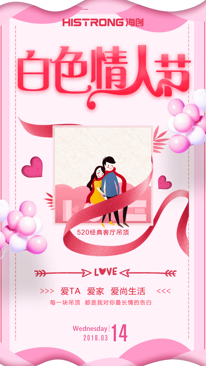 這個(gè)白色情人節(jié),送TA一片520系列海創(chuàng)集成吊頂,給愛(ài)巢筑起一片天空!