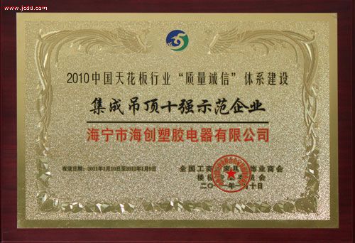 【特大喜訊】海創(chuàng)榮獲“集成吊頂十強(qiáng)示范企業(yè)”稱號來源:海創(chuàng)集成吊頂十大品牌     發(fā)布時間:2011/1/11 12:36:03